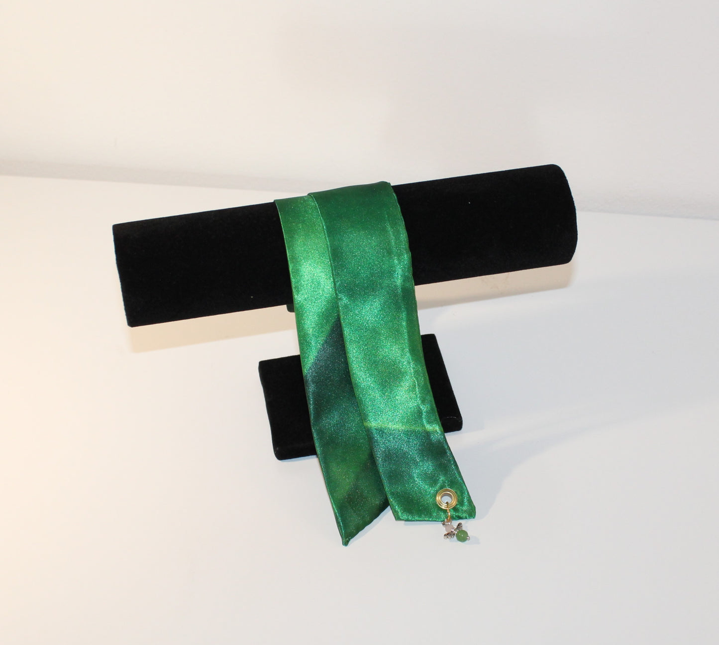 Tie the accessory on your bag’s handle or around your wrist or ponytail for a chic look. Comes with a real semi-precious gemstone charm. The crystals: Green Aventurine - releases old patterns, habits, and disappointments so new growth can take place. Smoky Quartz - is a powerful grounding stone used extensively in healing and meditation work.